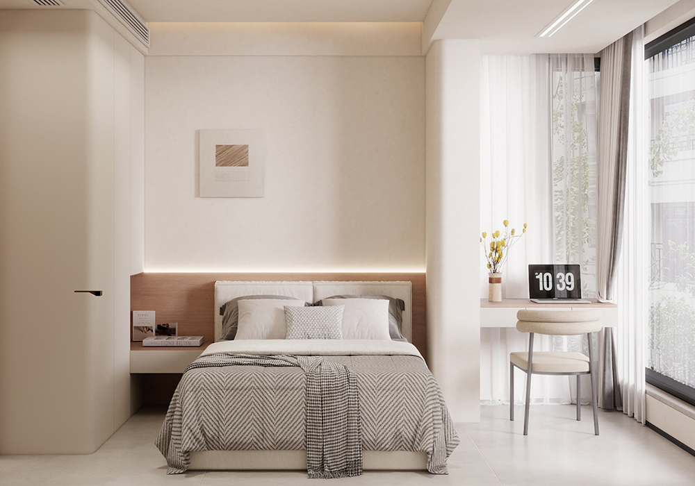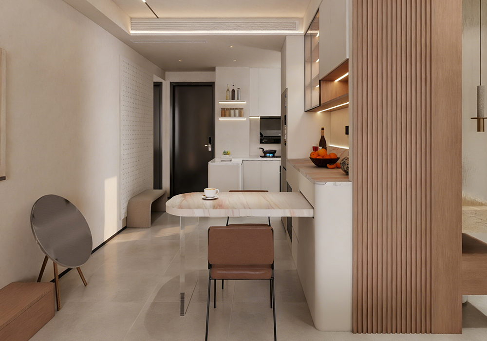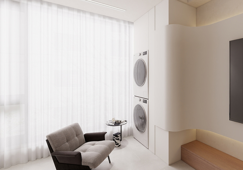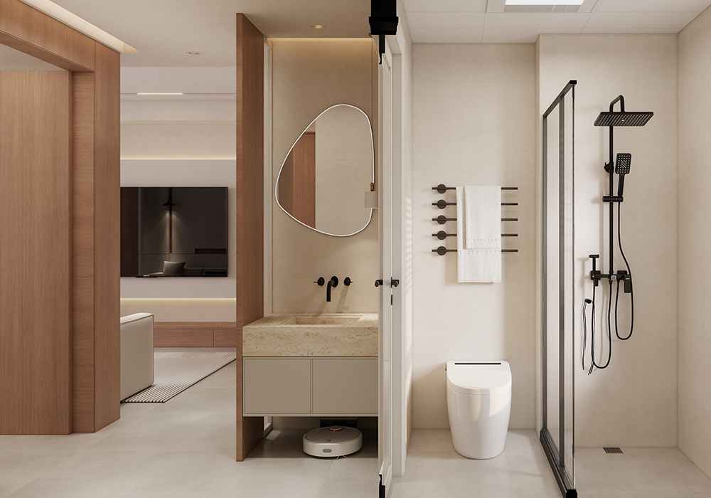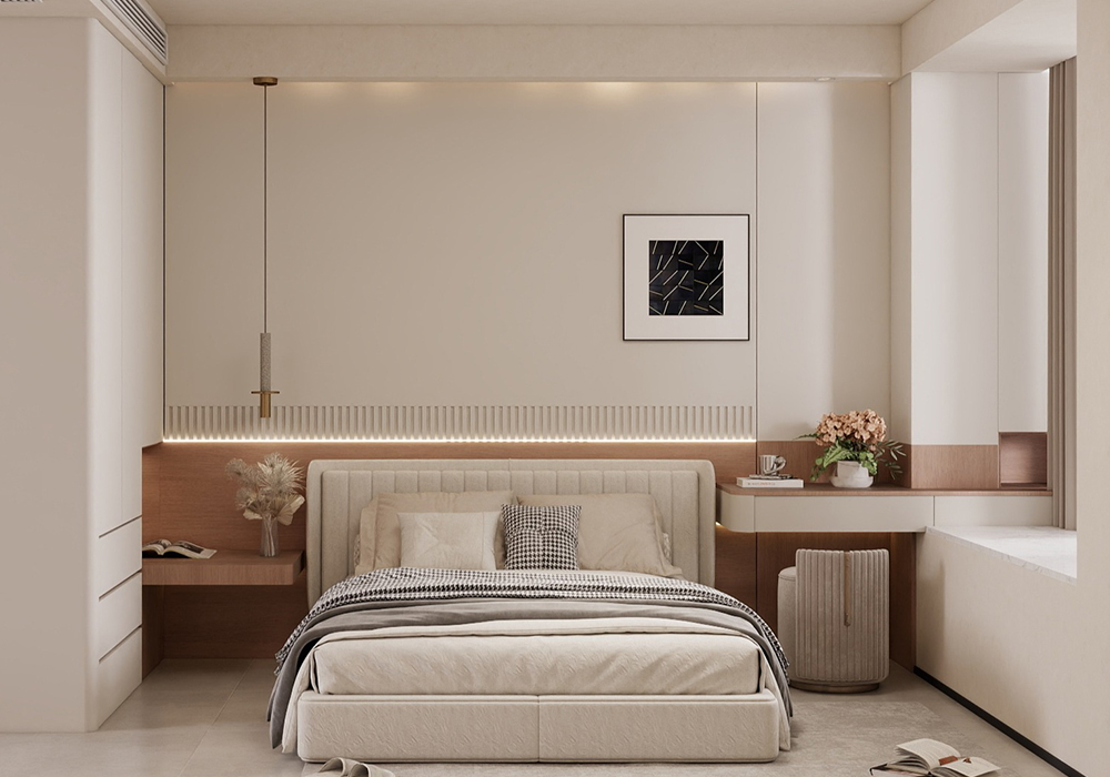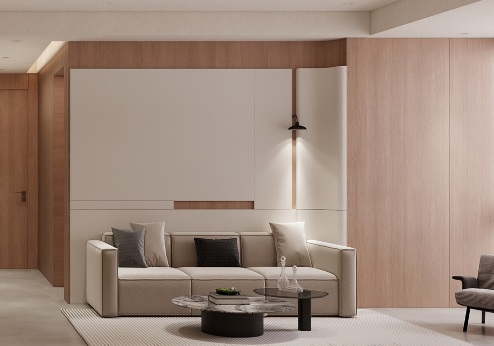 本案以“素净克制,温润治愈”为核心,打造一套融合现代极简与侘寂美学的居住空间,通过材质与光影的细腻表达,构建松弛且充满温度的日常场景。
